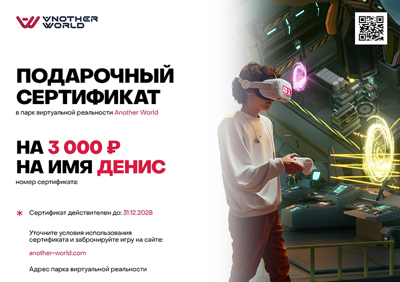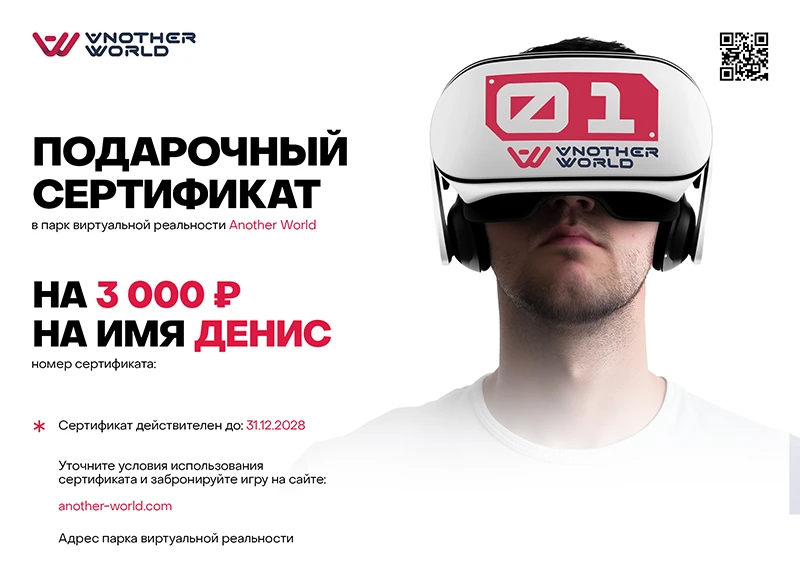 Подарочный сертификат в виртуальную реальность